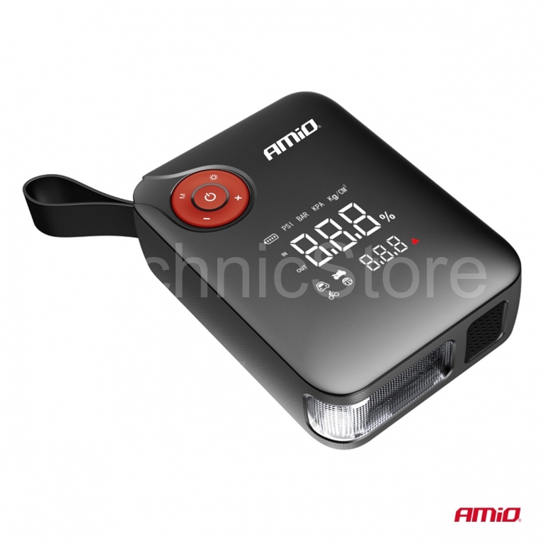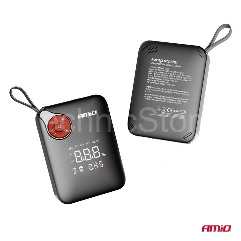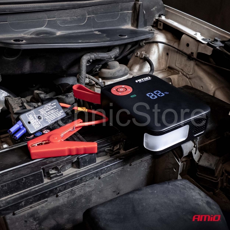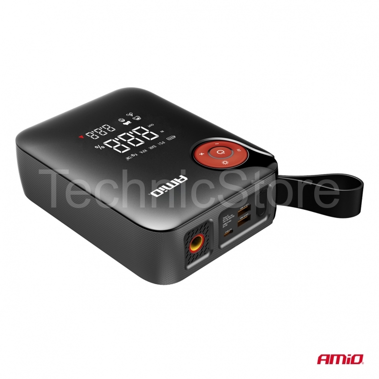 Startovací zařízení AMiO Mini 4 v 1 je kompaktní a všestranné zařízení, které kombinuje funkce startovacího adaptéru, vzduchového kompresoru, powerbanky a LED svítilny. Navzdory svým malým rozměrům nabízí plnou funkčnost a vysoký výkon, ideální pro dílnu i každodenní použití.